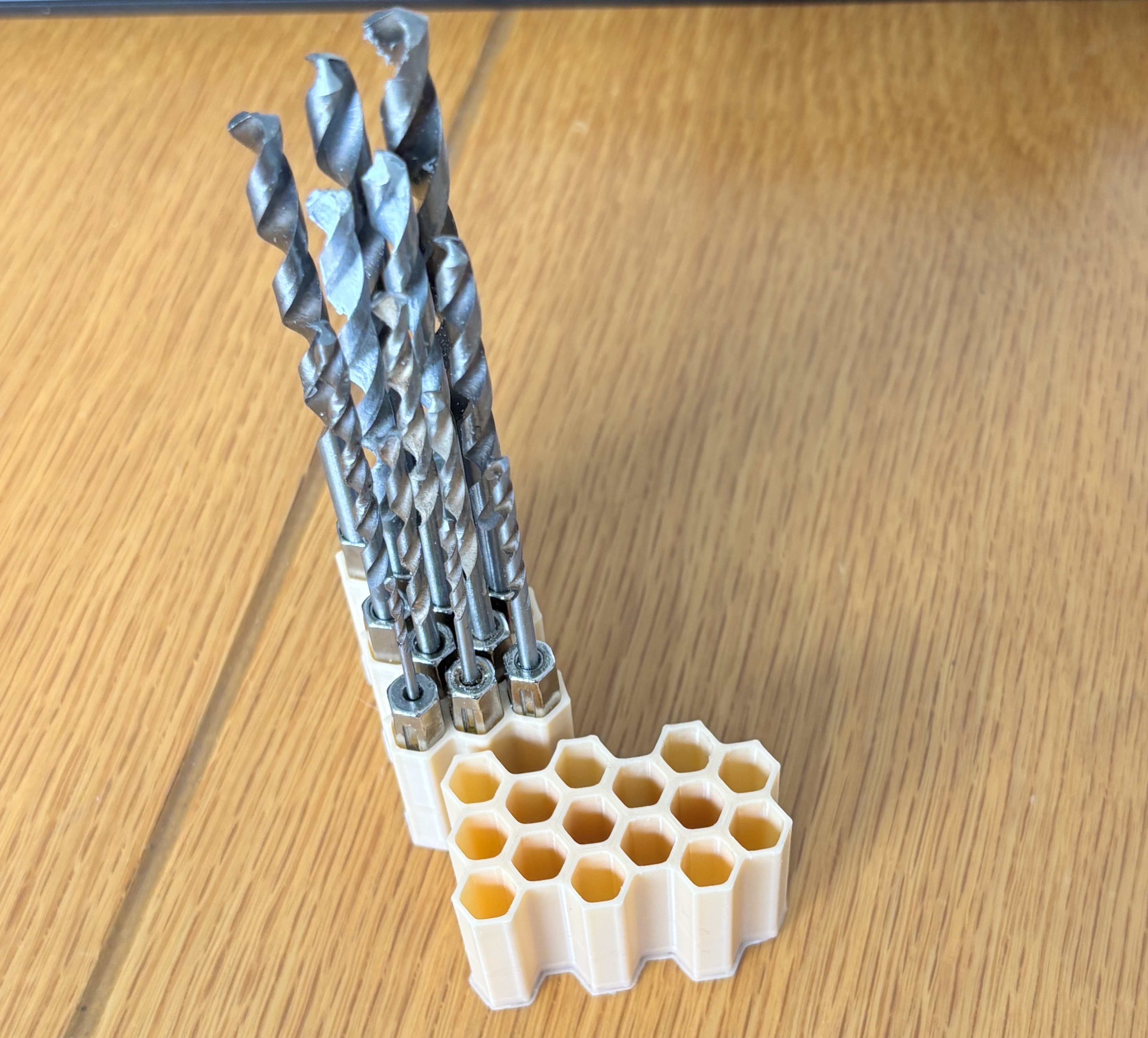 I created a simple compact honeycomb design to organize my hex tool drill bits.